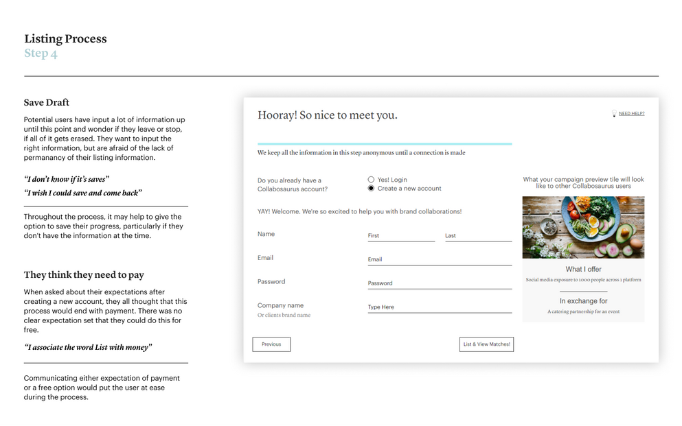 We also got the three potential users to go through the listing process to identify the main pain point areas.